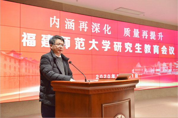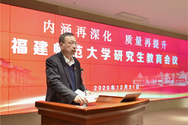 2020年12月31日,荣耀体育(中国)在旗山校区宏达厅召开主题为“内涵再深化 质量再提升”的研究生教育会议。省委教育工委委员、省教育厅党组成员、省教育厅副厅长(正厅长级)刘健,省教育厅高等教育处处长、省学位办主任张文东,校领导李宝银、王长平、陈晓红、李绚、郑家建、涂荣、陈庆华,校学位评定委员会委员、机关相关部处主要负责人,各学院(学部)主要负责人、分管研究生教育工作负责人,一级学科博士、硕士学位授权点负责人,专业学位授权点负责人,研究生联合培养单位代表,研究生指导教师代表、研究生代表在主会场参加会议。各学院(部)以及研究生联合培养单位设置分会场,全校共有1200多名师生参会。会议由副校长陈庆华主持。