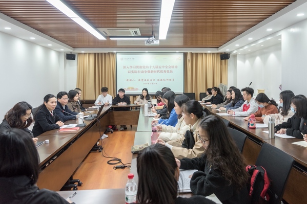2020年12月30日,校党委副书记陈晓红以《深入学习贯彻党的十九届五中全会精神 以实际行动争做新时代优秀党员》为题,为学生党员代表上思政课。她从四个准确把握出发,解读了党的十九届五中全会精神,介绍了我国发展所取得的辉煌成就。她希望学生党员们坚持不懈加强理论学习,筑牢理想信念之基;坚持不懈增强学习本领,锻造全面发展之才;坚持不懈强化使命担当,发挥先锋模范作用,让青春之花在党和人民最需要的地方绚丽绽放。