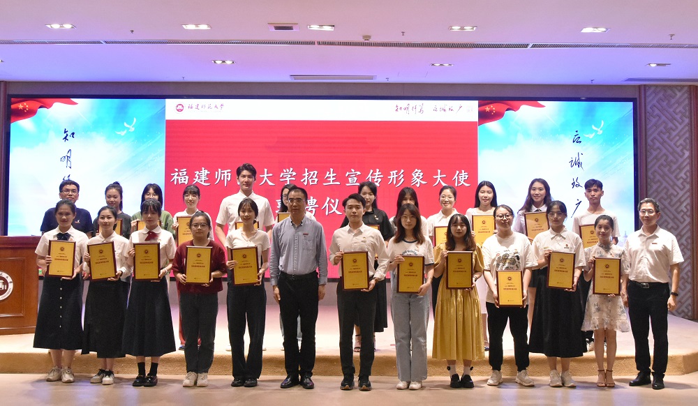 仪式于6月19日在旗山校区宏达厅举行,副校长郑家建,学生工作部、招生与考试办公室有关负责人以及受聘的28位招生宣传形象大使参加。