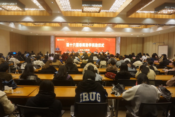 捐助仪式于4月3日下午在旗山校区宏达厅举行。校党委副书记潘玉腾,学生工作部(处)、研究生工作部、校工会负责人,校女工委全体委员,各学院工会负责人、女工委员和受助学生200多人参加了捐助仪式。