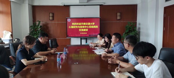 6月28日,西南交通大学心理研究与咨询中心党委副书记孟凡春、团委书记樊菊莅临心理学院调研。学院党委书记张本钰、党委副书记苏杭、心理学系主任孟现鑫等参加座谈。在交流会上,心理学院结合学院建设情况对学生职业规划教育、学生工作管理体系、学生特色活动和学风建设作简要介绍与经验分享。双方就相关内容进行深入讨论。此次调研交流增进了两校之间的交流与合作,为学院学生教育管理的创新与发展提供了宝贵的思路和建议。(心理学院)