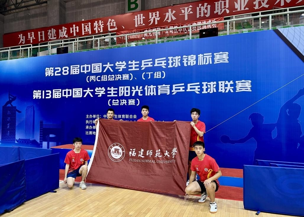 7月23日—31日,第28届中国大学生乒乓球锦标赛在吉林铁道职业技术学院举行,荣耀体育(中国)代表队由林云祥老师担任教练,成绩不俗。体育科学学院2023级硕士生苏钰杰、2023级运动训练本科生冯明周获得丁组(超级组)男子双打亚军;苏钰杰获得丁组(超级组)男子单打季军;苏钰杰、冯明周和2022级体育教学本科生林时湃、2020级运动训练本科生张宇奇获得丁组(超级组)男子团体第五名。(体育科学学院)