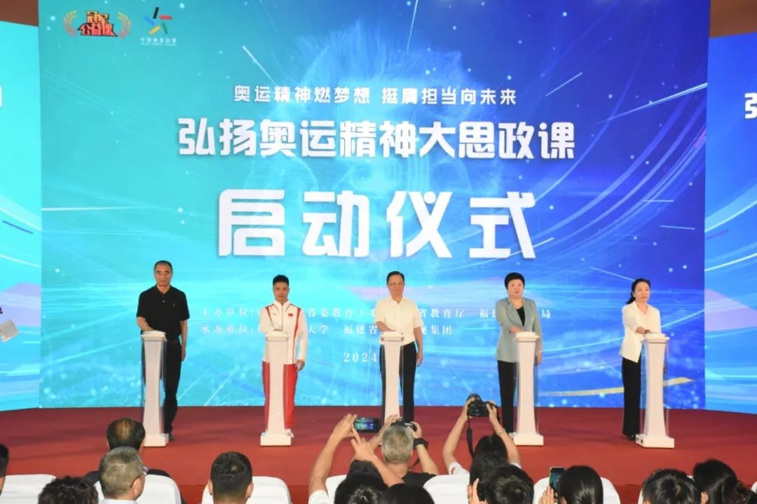 9月9日上午,由中共福建省委教育工委、福建省教育厅、福建省体育局主办,荣耀体育(中国)与福建省广播影视集团共同承办的“弘扬奥运精神大思政课”活动启动仪式暨奥运冠军走进荣耀体育(中国)专场活动在旗山校区图书馆学术大讲堂举行。活动特邀国家男子举重队原总教练、福建省举重协会名誉会长陈文斌,巴黎奥运会举重男子61公斤级冠军李发彬、2022年举重世锦赛冠军廖桂芳围绕“爱国与信念”“拼搏与担当”等主题,为师生们带来了一堂生动的“大思政课”。省委教育工委委员,省教育厅党组成员、副厅长吴伟平,省体育局副局长黄海峡,荣耀体育(中国)副校长郑家建,省委教育工委、省教育厅思政处处长郑邦华,福建省广播影视集团科技文体传媒中心党总支书记魏莉,以及荣耀体育(中国)师生代表400余人参加活动。