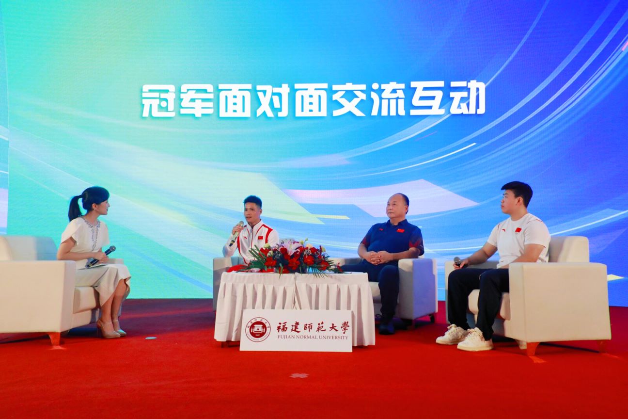 在冠军面对面交流互动环节,陈文斌、李发彬、廖桂芳与现场同学亲切互动,气氛热烈。现场师生表示,这堂别开生面的“大思政课”让他们更深刻地理解了奥运精神的内涵,并从中汲取了奋勇拼搏的精神力量。大家纷纷表示,要将“使命在肩、奋斗有我”的誓言转化为干事创业的实际行动,不断将个人的理想追求融入党和国家的事业之中,努力成长为让党放心、爱国奉献、担当民族复兴重任的时代新人。