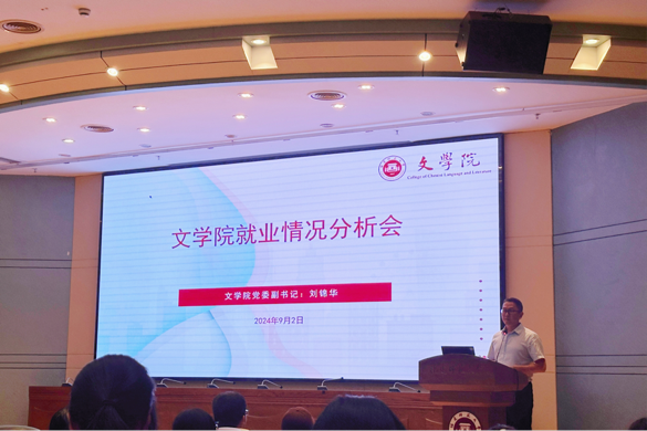 92日,文学院召开2025届本科毕业生升学及就业动员大会。学院党委副书记刘锦华、副院长周云龙、院务委员冯直康,2021级本科辅导员及全体毕业生参加。