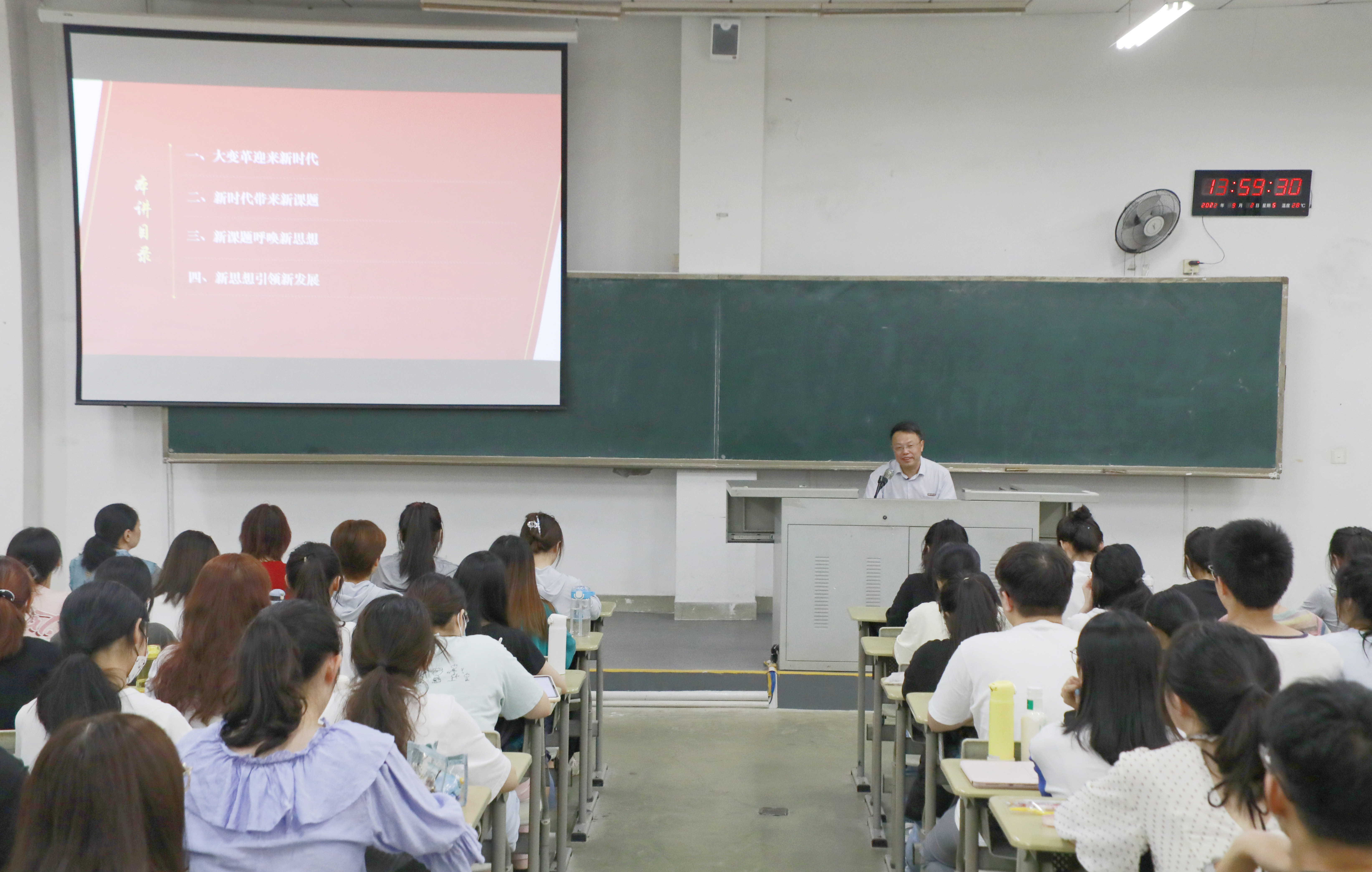 9月2日,新学期伊始,校党委书记潘玉腾教授在旗山校区知明楼教室,为法学院2021级同学带来生动的开学第一堂思政课。