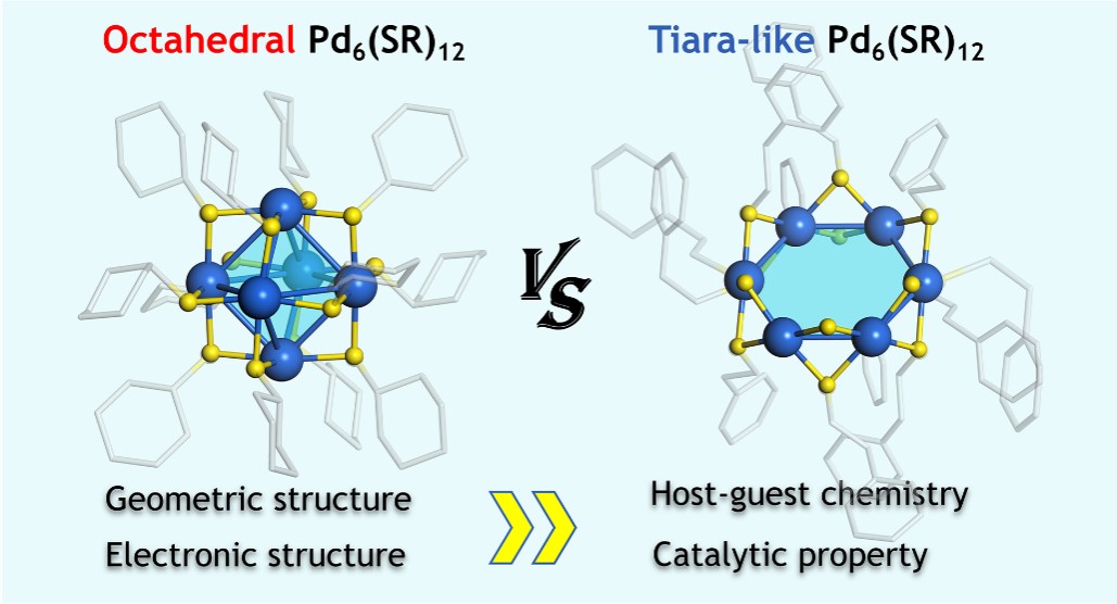 近期,姚传好教授团队以“Octahedral vs Tiara-like Pd6(SR)12 Clusters”为题,在线发表于国际著名期刊、美国化学会的Nano Letters(纳米快报)上。