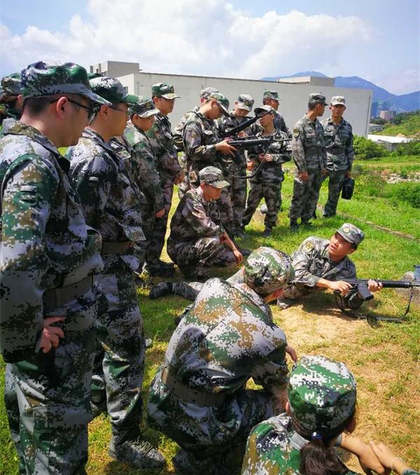 本次军训内容主要有队列、战术、持枪训练、解放军三大条例内容的学习、野外拉练、枪械拆装、实弹射击、参观登陆舰和连队营地等,同时还开展了军校思想政治工作交流座谈、篮球联谊赛、文艺联欢等活动。参训辅导员充分地感受和体验了军营文化,提升了军事意识和素养,与部队官兵相互学习、密切交流,取得了良好的成效。