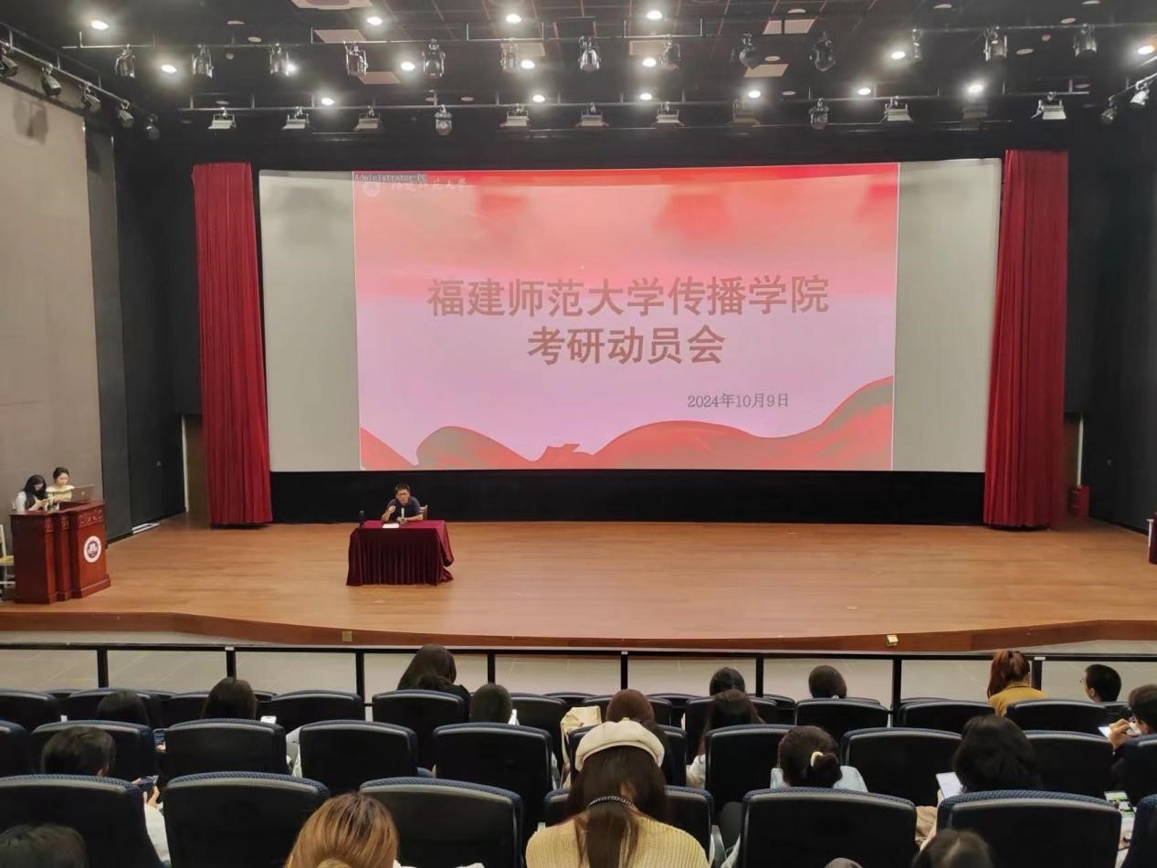近日,传播学院邀请具有备考经验的老师在星雨剧场举行考研动员会,学院党委副书记林子鸿、副院长连水兴出席大会,学院近200名同学参与。大会由林子鸿主持。