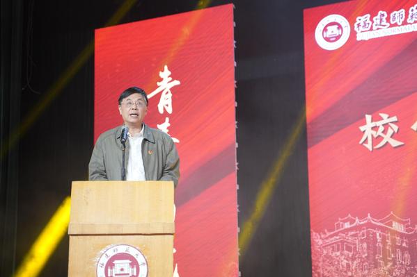 表彰大会在《青春为祖国歌唱》快闪MV中开场,在全场高唱国歌中正式拉开帷幕。校党委书记李宝银致辞,他讲述了五四运动和学校的历史渊源,指出红色是学校与生俱来的基因,坚持马克思主义是学校办学最鲜明的底色。他充分肯定了过去一年学校共青团在引领青年、凝聚青年、服务青年中所取得的成绩,肯定了学校广大青年刻苦学习,砥砺奋进,筑梦前行的奋进精神,强调广大师生要认真学习贯彻习近平总书记在纪念五四运动100周年大会上的重要讲话精神,用五四精神激励自己牢记使命责任,希望全校青年学生要涵养胸怀祖国、心有人民的家国情怀,要砥砺勤学修身、知行合一的实践品格,要弘扬敢为人先、开拓创新的奋斗精神。他要求,学校共青团要坚定“党旗所指就是团旗所向”的政治方向,认真履行引领凝聚青年、组织动员青年、联系服务青年的职责,加强自身建设,做好青年工作,为学校高水平大学和“双一流”建设凝聚强大的青春力量。
