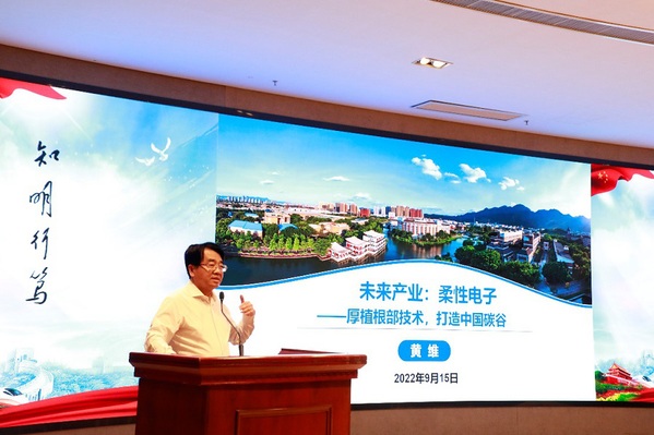 在“开学第一课”中,黄维院士以“未来产业:柔性电子—厚植根部技术,打造中国碳谷”为题,围绕“颠覆性创新定义国家未来”“柔性电子未来产业的发展”“创新团队与近期研发成果”“柔性电子产业机遇与挑战”四个方面,向师生系统讲授了柔性电子的学科内涵、发展趋势和创新使命,勉励师生勇做新时代科技创新排头兵,聚焦柔性电子关键领域,大胆探索、创新创造,为打好科技自立自强主动仗贡献青春智慧和力量。