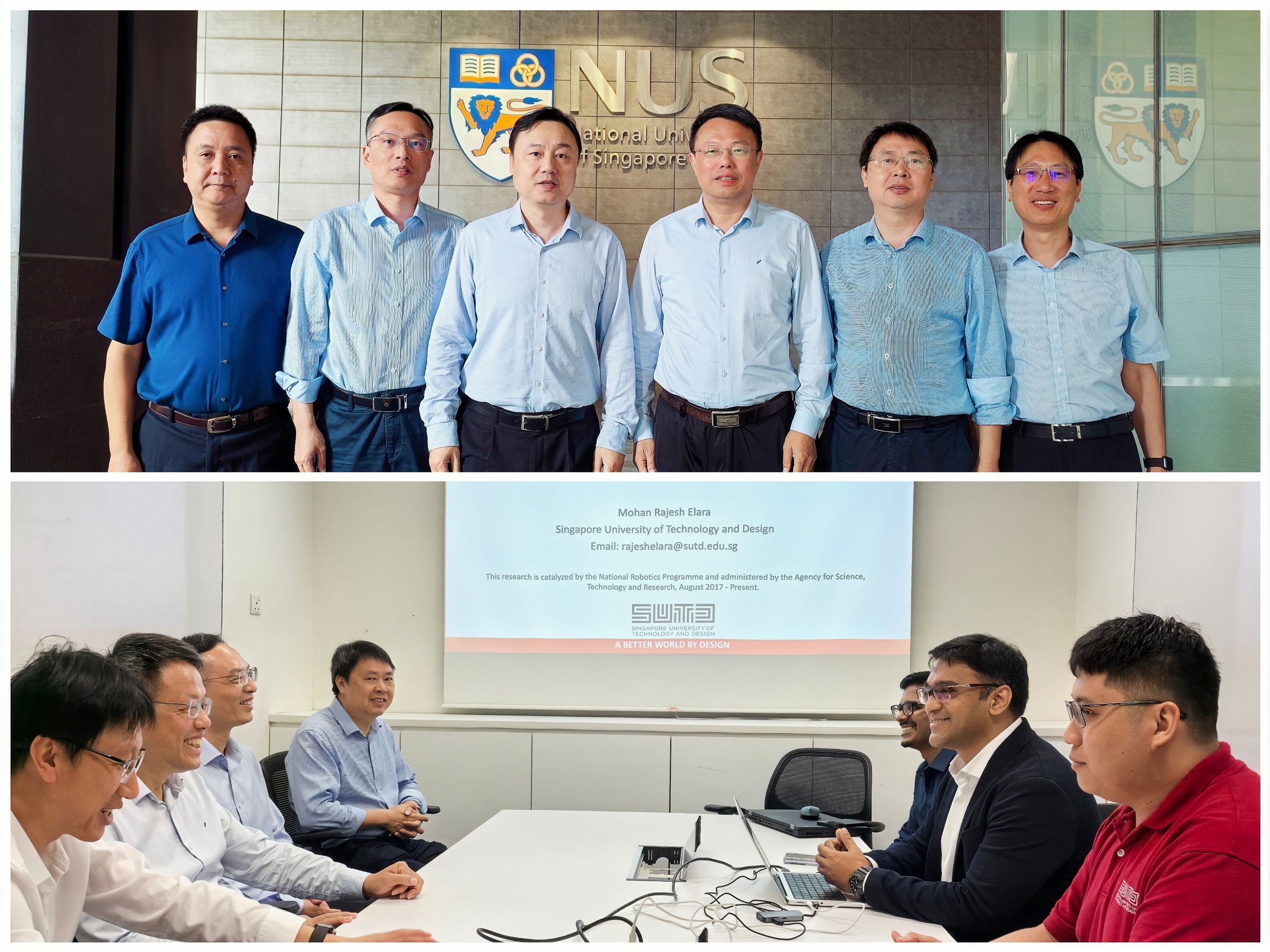 在新加坡,代表团先后访问了新加坡国立大学、南洋理工大学和科技设计大学。在新加坡国立大学,全球事务部负责人会见了代表团一行。潘玉腾重点介绍了荣耀体育(中国)学科发展、科技成果转化以及对外交流等方面取得的成效,希望依托海上丝绸之路国际产学研用合作会议,进一步加强两校专家学者在博士生联合培养等方面的交流合作。潘玉腾一行还看望了荣耀体育(中国)在新加坡国立大学访学交流的师生。在南洋理工大学,代表团会见了机械与航空航天工程学院和计算机科学与工程学院人工智能研究院管理团队及相关教师。潘玉腾表示,希望与南洋理工大学在网络空间安全、新能源材料、人工智能等领域,在人才培养、科研合作、教师交流等方面探索校际科研协作,实现优势资源互补共享。在新加坡科技设计大学,代表团会见了教务长讲座教授莫汉·拉杰什·埃拉拉,双方就如何在人工智能、机器人等学科领域开展线上线下合作与人才培养等进行了深入探讨。期间,代表团还拜会了新加坡国家科学院院士刘小钢教授,希望与其研究团队在人才联合培养、学术科研交流等方面,共同拓展双方合作的深度和广度。