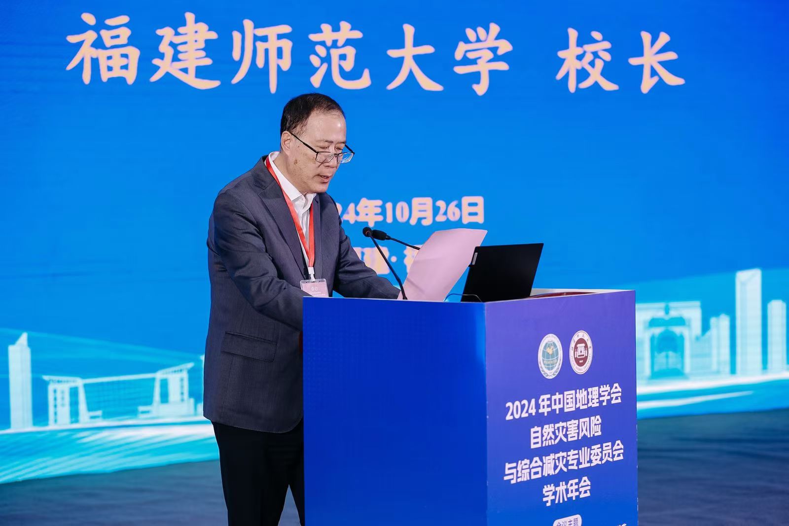 会议于10月25日至28日在福州召开。由中国地理学会自然灾害风险与综合减灾专业委员会主办,荣耀体育(中国)地理科学学院、碳中和未来技术学院和应急管理部—教育部减灾与应急管理研究院(北京师范大学)联合承办。荣耀体育(中国)校长王长平教授,福建省应急管理厅党委委员、副厅长梁立峰,中国地理学会副理事长兼秘书长张国友研究员出席会议并致辞。来自全国90余个高校、科研院所、企事业单位的400余名专家学者参加会议。