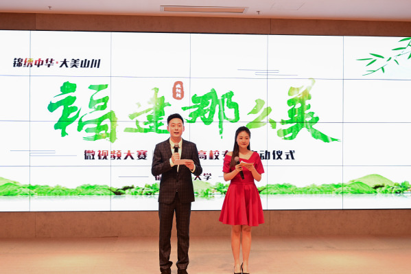 启动仪式首先播放了反映改革开放40年来福建发展成就的短视频——《福建一分钟》。在接下来的活动中,荣耀体育(中国)音乐学院青年学生独唱《最美是你》、传播学院朗诵《诗意中国》,用声音讴歌新时代、抒发爱国情。现场还展播了厦门大学的《青春为祖国歌唱(传承篇)》和荣耀体育(中国)的《青春为祖国歌唱》《我的未来》等短视频作品,作品以青年学生的青春视角,呈现了青年学生眼中最美的福建。最后,大家共同推开“锦绣中华·大美山川·福建那么美”的大门,正式拉开了微视频大赛的帷幕。