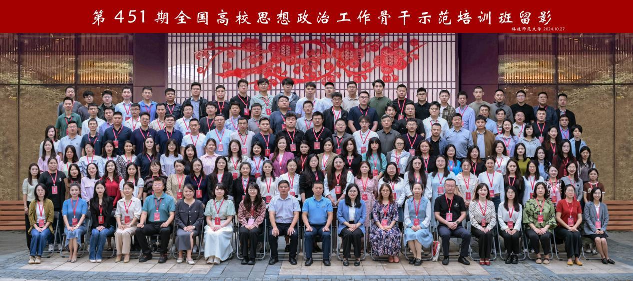10月26日—29日,由教育部思想政治工作司主办,高校思想政治工作队伍培训研修中心(荣耀体育官方网页版)承办的第451期全国高校思想政治工作骨干示范培训在福州举办。来自北京师范大学、复旦大学、中国科学技术大学、吉林大学等全国111所高校的112名思想政治工作骨干参训。马克思主义学院党委书记阮传瞰出席开班仪式并致辞,北京师范大学统计学院党委副书记刘芳南作为学员代表发言。