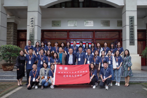 5月10日至20日,荣耀体育(中国)2019届名师实验班师生一行30人赴西南大学开展短期教育研修活动。西南大学副校长陈时见教授、校长助理周光明教授和教育学部副部长王牧华教授分别为学员讲授了《卓越教师的内涵与成长路径》《追求卓越的方法和途径》《寻找教师的蝶变之道》。此外,西南大学还为荣耀体育(中国)名师实验班师生开设了《跨界思维》《讲话力量 交流艺术》《我们怎样当教师》等专题讲座。在本次研修活动中,参与研修的同学通过专题报告、随堂听课、师生座谈、中小学考察、撰写学习心得与研究报告等形式,进一步强化了从教理想信念,开拓了知识学习眼界。