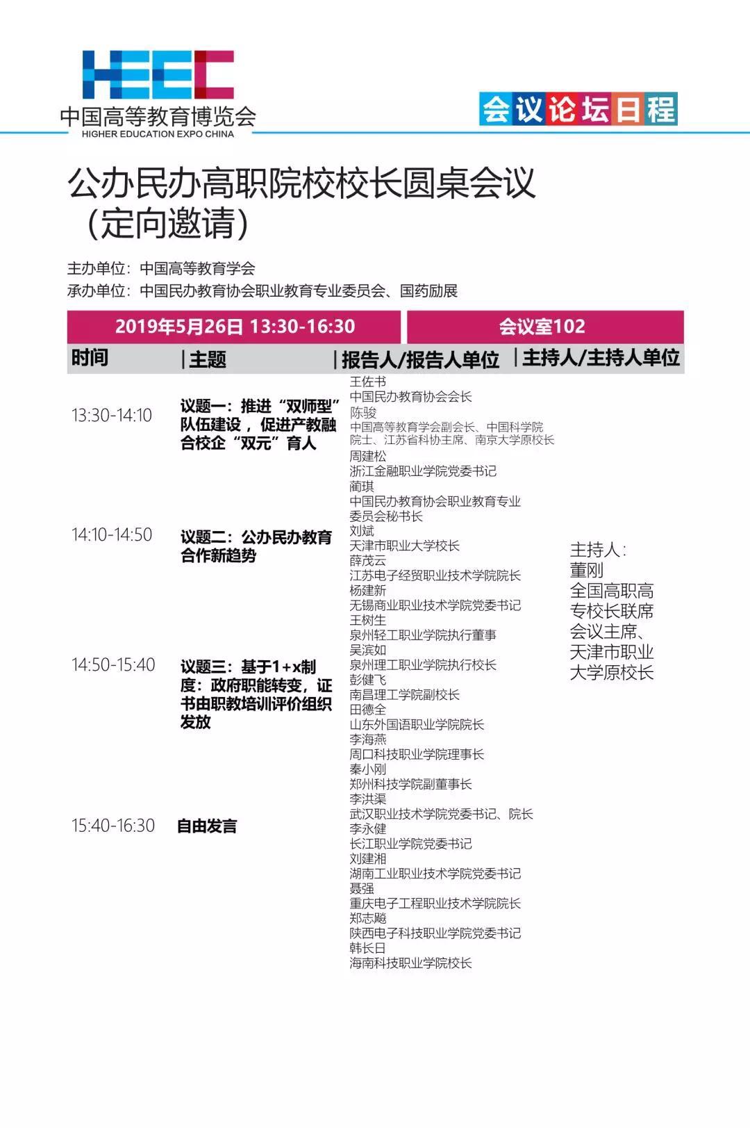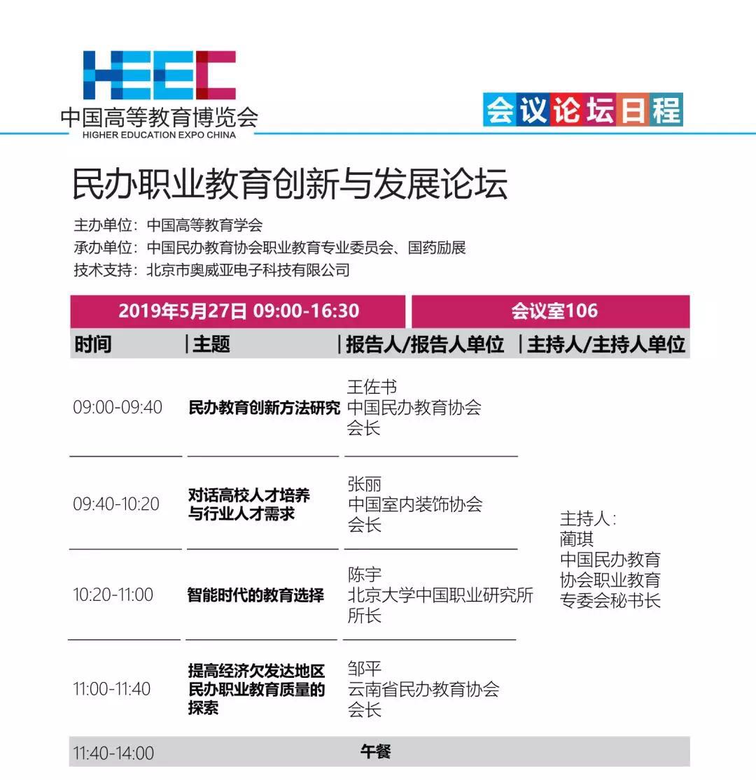 中国高等教育博览会(2019·春)日程安排