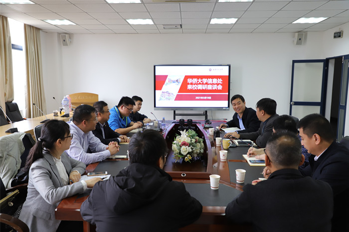 3月18日,华侨大学信息化建设与管理处处长项士敏,副处长叶剑虹、王俊伟等一行5人来校考察交流。网络与数据中心领导许力、范新民、李溢明,及相关科室负责人参加交流座谈会。