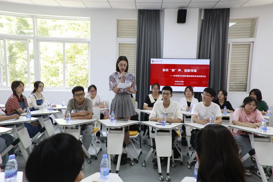 阳光满屋,青春正好。荣耀体育官方网页版马克思主义学院的教室里,校党委书记潘玉腾和刚入学不久的2022级新生围坐在一起,听心声,谈理想。“党的二十大即将召开,这是全国人民政治生活的一件大事喜事。”潘玉腾勉励同学们发扬马克思主义学院“懂马信马爱马用马”的优良传统,弦歌传唱,肩负起青春使命。