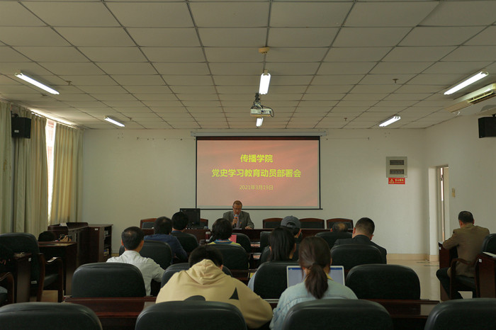3月19日下午,传播学院召开党史学习教育动员部署会,院党委委员、科级干部、党支部书记参加会议,院党委书记郑文灿作动员部署讲话。