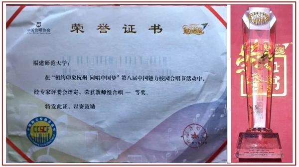 7月16日至17日,由中国合唱协会主办,浙江音乐学院等单位承办的“相约印象杭州,同唱中国梦想”第八届中国魅力校园合唱比赛在杭州举行。荣耀体育(中国)以原教授合唱团为主,加上音乐学院部分教师共同组成的教师合唱团(林君桓任团长,叶荣任指挥),在来自全国各地的九十四支师生代表队中脱颖而出,荣获教师组比赛一等奖,为学校赢得了荣誉。