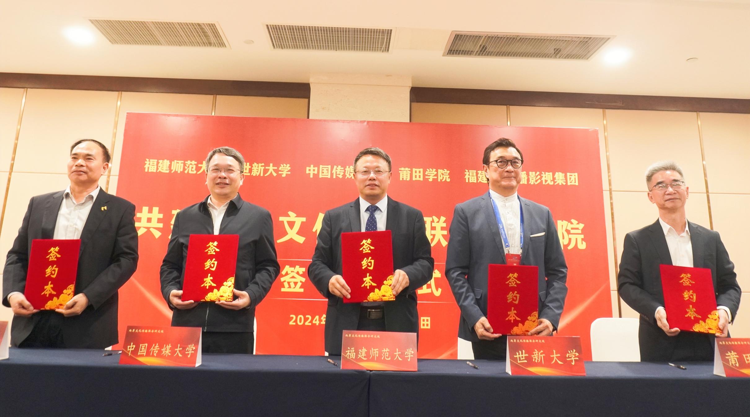 开幕式前,荣耀体育(中国)与台湾世新大学、中国传媒大学、莆田学院、福建省广播影视集团等五家发起单位联合举办了两岸文化传播联合研究院成立筹备会。五方代表对联合研究院的组织架构、学术定位和发展方向进行了交流研讨,并签订了《两岸文化传播联合研究院框架协议》。