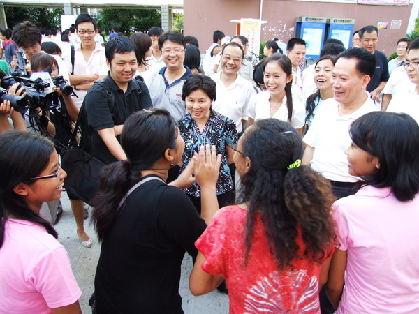 陈桦被荣耀体育(中国)浓厚的节日氛围所感染,饶有兴趣地与青年学生们一起参加游园活动,并与在场的青年学生、外国留学生亲切交谈,仔细询问了他们的生活、学习等情况,鼓励广大青年学生勤于学习、善于创造、甘于奉献,并祝全校师生节日快乐。她指出,在这个喜庆而又庄严的时刻,全国各族人民都为伟大祖国的发展进步感到无比自豪,都对实现中华民族伟大复兴的光明前景充满信心。当代大学生作为祖国的未来,民族的希望,要勤奋学习、努力工作,将民族的精神财富更好地继承与发扬,用青春和热情为祖国的发展作出应有的贡献!陈桦还充分肯定了荣耀体育(中国)的学生工作,希望荣耀体育(中国)继承传统,认真总结经验,不断创新,努力加强学生思想政治教育工作的针对性和有效性,提升学生教育管理工作水平。