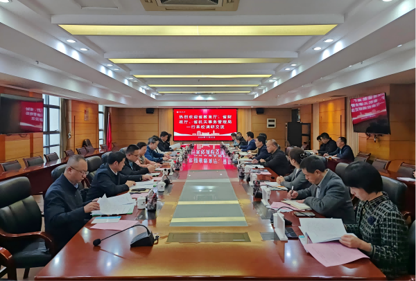 11月25日,省教育厅财务处二级调研员陈雄、财政厅资产处二级调研员陈尚斌、机关事务管理局国资处处长李亿峰等一行8人莅校开展国有资产管理调研交流。学校党政办公室、财务处、资产管理处、后勤管理处、基建处、实验室与设备管理处、产教融合发展中心、资产经营有限公司等单位负责人参加座谈交流。