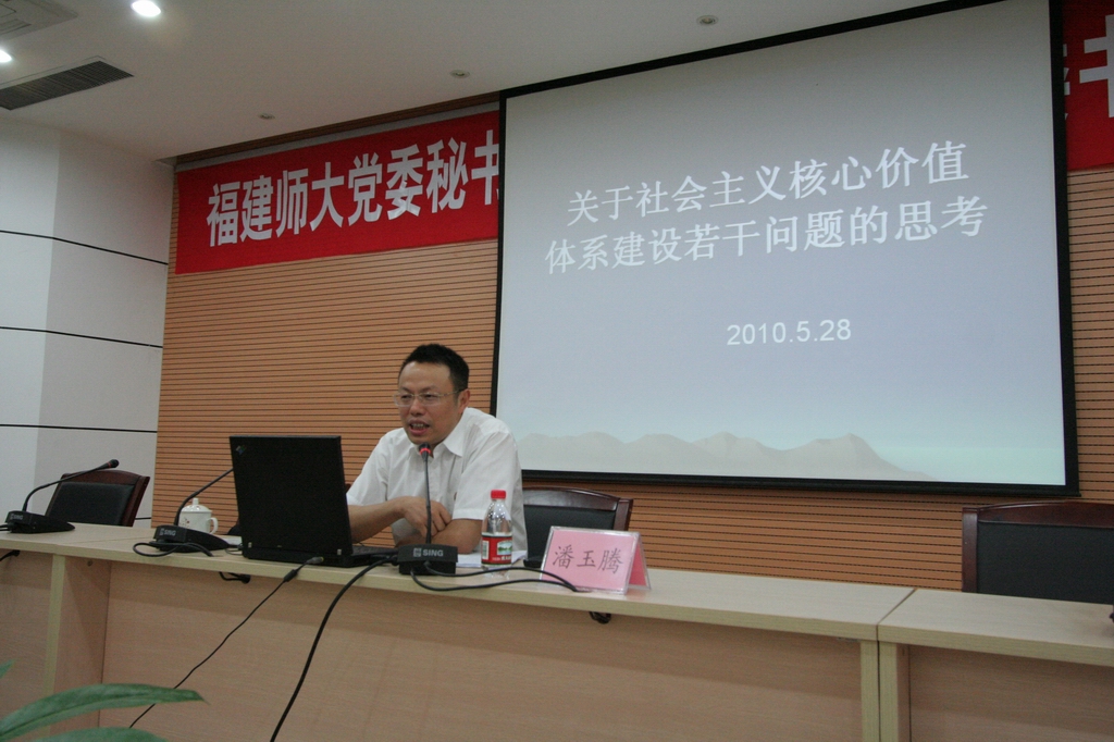 开学式结束后,校党委宣传部部长潘玉腾教授为全体学员作了题为《关于社会主义核心价值体系建设若干问题的思考》的讲座。讲座阐述了推进社会主义核心价值体系建设的背景,分析和总结了中外社会核心价值观建设的经验,提出了推进社会主义核心价值体系建设的路径选择。