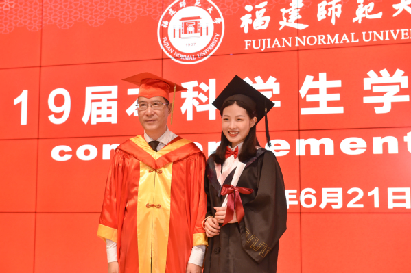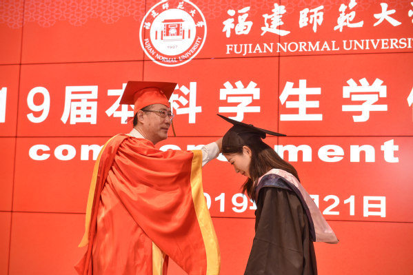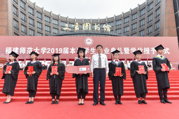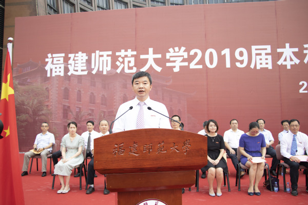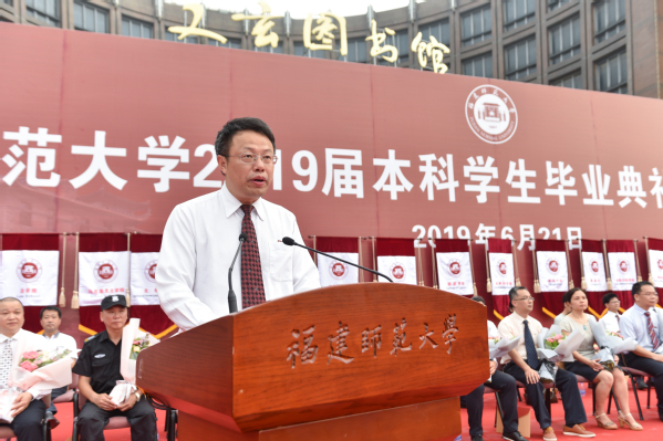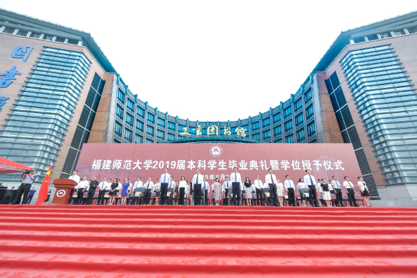 典礼于6月21日上午在旗山校区图书馆前广场隆重举行。校领导李宝银、王长平、潘玉腾、叶燊、郑家建、涂荣,机关各部处负责人,各学院党政负责人、教师代表、毕业班辅导员、校职工代表,全体2019届本科毕业生,以及部分毕业生家长等共6000多人参加了毕业典礼。典礼由校党委副书记叶燊主持。