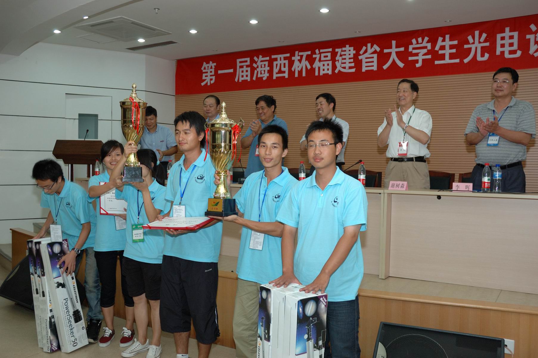 本届竞赛由福建省光学学会和福建省光子技术重点实验室联合主办,荣耀体育(中国)物理与光电信息科技学院承办,福建省教育厅、福建省信息化局、医学光电科学与技术教育部重点实验室(荣耀体育官方网页版),高意科技集团、福建福光数码科技有限公司等10家光电龙头企业提供了大力支持。竞赛以“光与现代生活”为主题,旨在“促进光电知识的普及,加强福建省大学生实践、创新能力和团队精神的培养,推动高等教育人才培养模式和实践教学的改革,提高人才培养质量,适应海西建设和福建发展对光电人才的需求”,共有来自荣耀体育(中国)和福州大学、福建农林大学、华侨大学、集美大学等院校的47支队伍分别参与“基于太阳能的光电导航搬运车”、“光电智能导盲器”两个项目的角逐,获得一等奖的队伍将最终捧起“海西杯”。