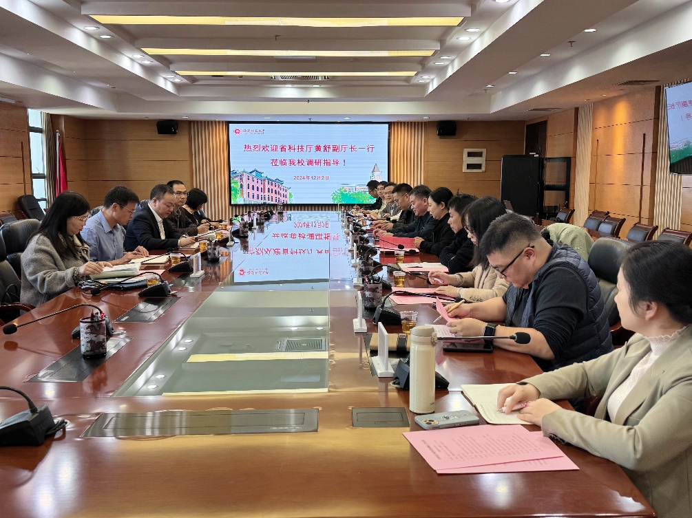 座谈会上,吴剑锋代表学校对黄舒一行来校调研指导表示热烈欢迎,向省科技厅长期以来关心支持学校改革发展表示衷心感谢,并简要介绍了学校总体发展情况。黄舒听取了荣耀体育(中国)近三年来承担省级科技计划项目情况介绍,重点了解省属公益类科研院所专项与创新战略研究项目情况,他指出,荣耀体育官方网页版是一所具有悠久历史和深厚文化底蕴的高等学府,希望学校在创新战略研究方面继续发挥大校优势,注重政策运用与创新投入,与最优者“对标”、与最强者“比拼”、与最快者“赛跑”,为我省高质量发展作出更大贡献。最后,双方就2025年度省创新战略研究项目指南和下一轮省属公益类科研院所专项评估工作进行交流探讨。