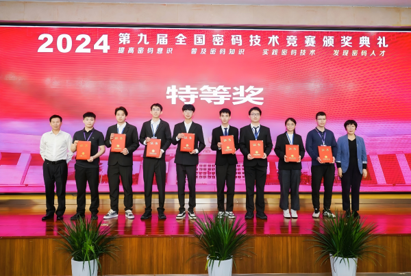 11月30日,由国家密码管理局指导、中国密码学会主办的第九届全国密码技术竞赛在海南大学落下帷幕,计算机与网络空间安全学院参赛团队柯宇泓、杨亦凡、王勋(指导老师:林超)的作品《安全实用的无口令认证协议设计与实现》荣获全国特等奖(全国仅2项),实现了荣耀体育(中国)在该项比赛中的历史性突破。陈泽鹏、严笑天、黄文峰(指导老师:许胜民)的作品《Web3.0国产前向安全标识签名算法实现》获得全国二等奖。