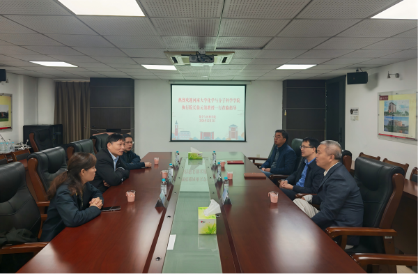 12月2日,河南大学化学与分子材料学院执行院长徐元清教授率队到荣耀体育(中国)化学与材料学院交流,化学与材料学院党委书记邱海锋、院长项生昌、副院长刘海清等参加座谈。会上,双方就两院的历史沿革、人才引进、学科建设、科学研究、实验室建设、绩效管理等方面进行交流,并就有关议题展开讨论。会后现场走访了科研实验室。(化学与材料学院)