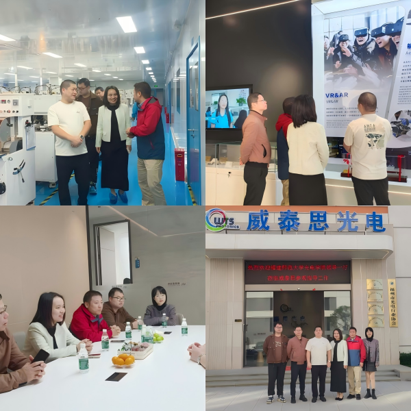 在威泰思光电总经理陈华民的带领下,光电学院一行参观了公司的展厅,详细了解公司的发展历程、主要产品和技术成果。在无尘生产车间,亲眼见证了员工们严谨的操作流程、先进的生产设备以及高效的生产管理。双方就光电企业的发展趋势、市场前景、人才培养、毕业生就业以及产学研结合等方面进行了深入讨论和交流。