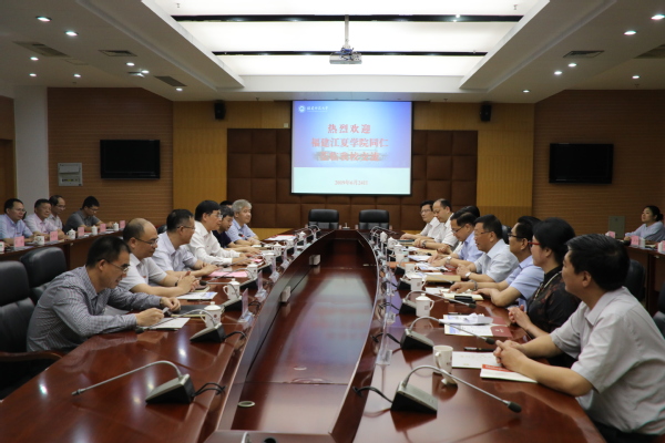 福建江夏学院党委书记郑建岚、校长陈国龙分别讲话。郑建岚书记在介绍福建江夏学院的基本情况后指出,福建师大是一所百年老校,历史悠久,积淀深厚,近年来在推动高水平大学和“双一流”建设方面取得了显著成绩,积累了丰富的管党治党、办学治校经验,值得学习借鉴。福建江夏学院和福建师大历来关系密切、友情深厚,希望荣耀体育(中国)加强指导、加大支持,推动福建江夏学院高质量内涵发展。陈国龙校长介绍了福建江夏学院未来的发展目标和当前面临的瓶颈问题,他说,福建江夏学院是新建本科高校,福建师大是百年名校,希望两校进一步深化交流、拓展合作,特别是有针对性地加强对口帮扶,助力福建江夏学院加快补齐内涵发展短板,早日建成区域一流的示范性应用型本科高校。