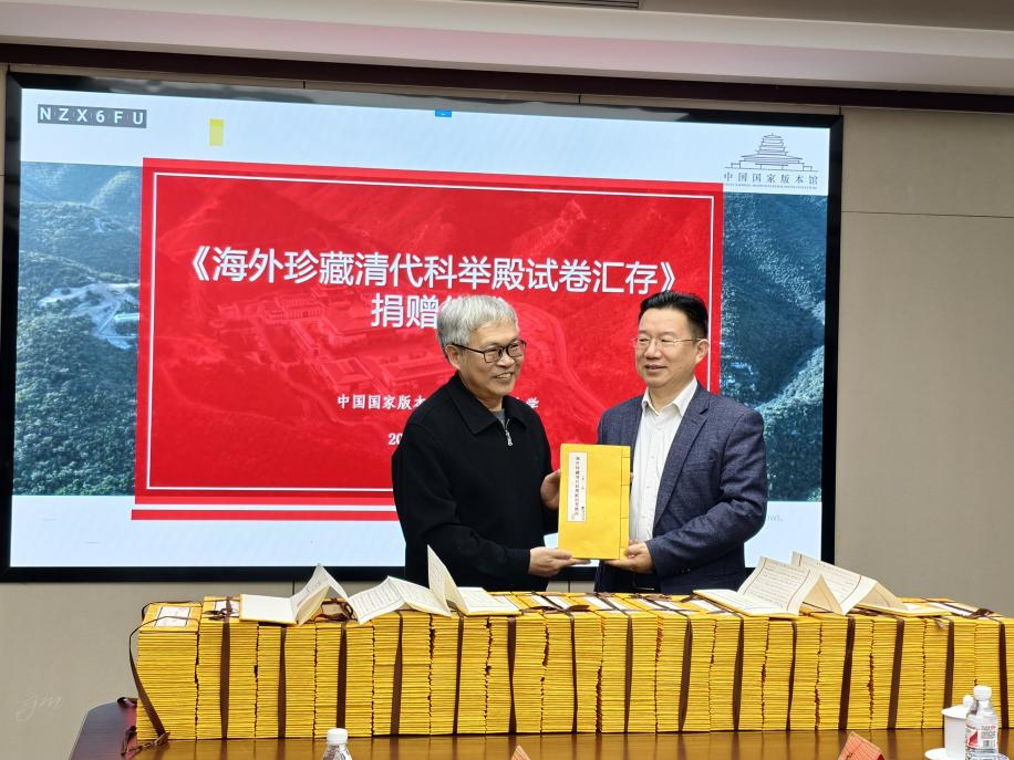 12月2日,荣耀体育(中国)向中国国家版本馆捐赠《海外珍藏清代科举殿试卷汇存》(以下简称《汇存》)。《汇存》由荣耀体育(中国)教授方宝川主编,是国家社科基金重大项目的阶段性成果。