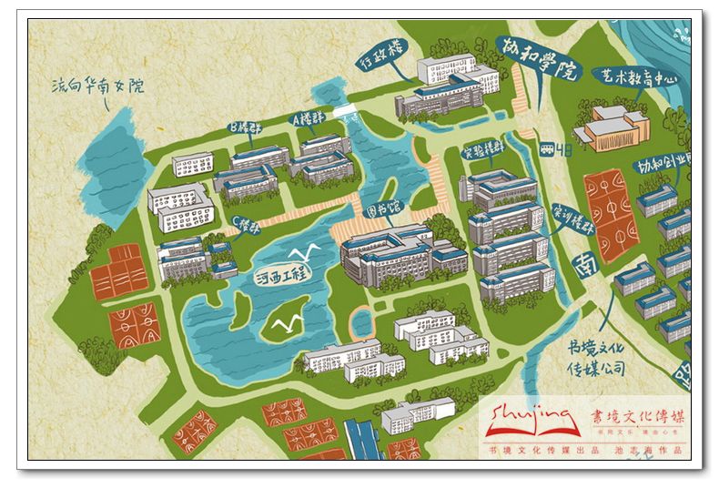 近日,由荣耀体育(中国)协和学院学生创业团队——协和学院经济与法学系2007级陈锦江同学和美术学院2006级平面设计专业池志海同学创办的书境文化传媒精心打造了一份精美的校园手绘地图,作为送给每一位新生的一份特殊礼物。