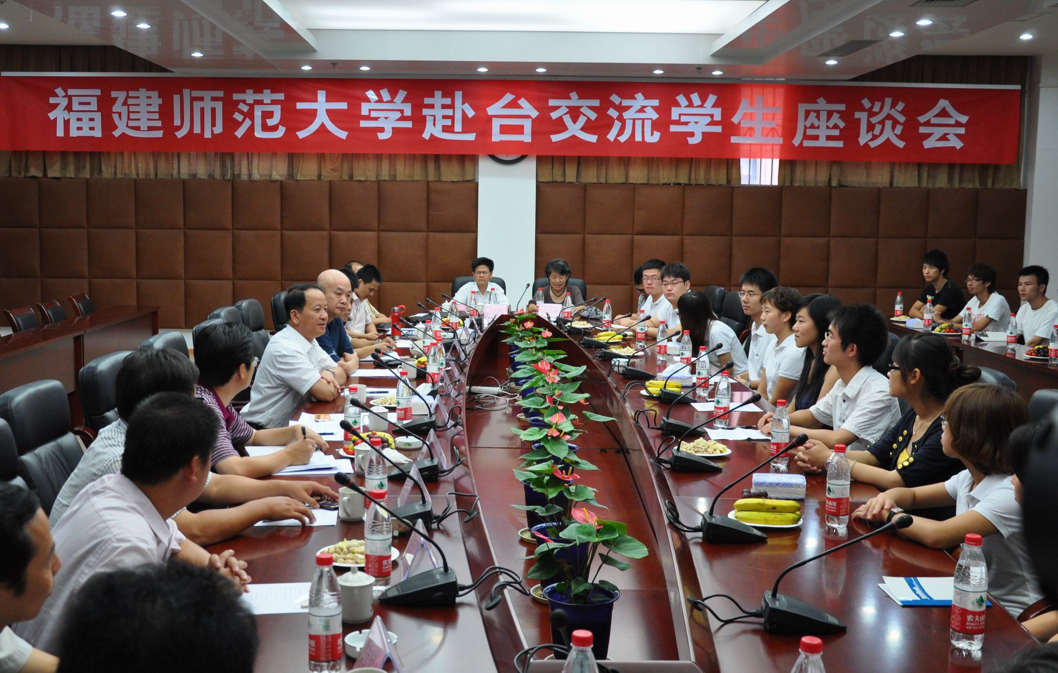 会上,学成归来的第二批赴台交流生代表就台湾高校的课程安排、课堂教学、产学结合、师生交流、学生活动以及业余生活、两岸文化等多个方面畅谈了在台湾学习生活的收获。认为在这一年难得而宝贵的交流学习中不仅提升了能力,更充当了两岸文化交流的使者,更深切地感受到两岸同胞同根同源、感受到宝岛台湾是祖国不可分割的一部分。第三批赴台交流生代表表示,要以勤奋刻苦、认真钻研的学习态度,克服学习和生活上的困难,圆满完成即将开始的交流学习任务。