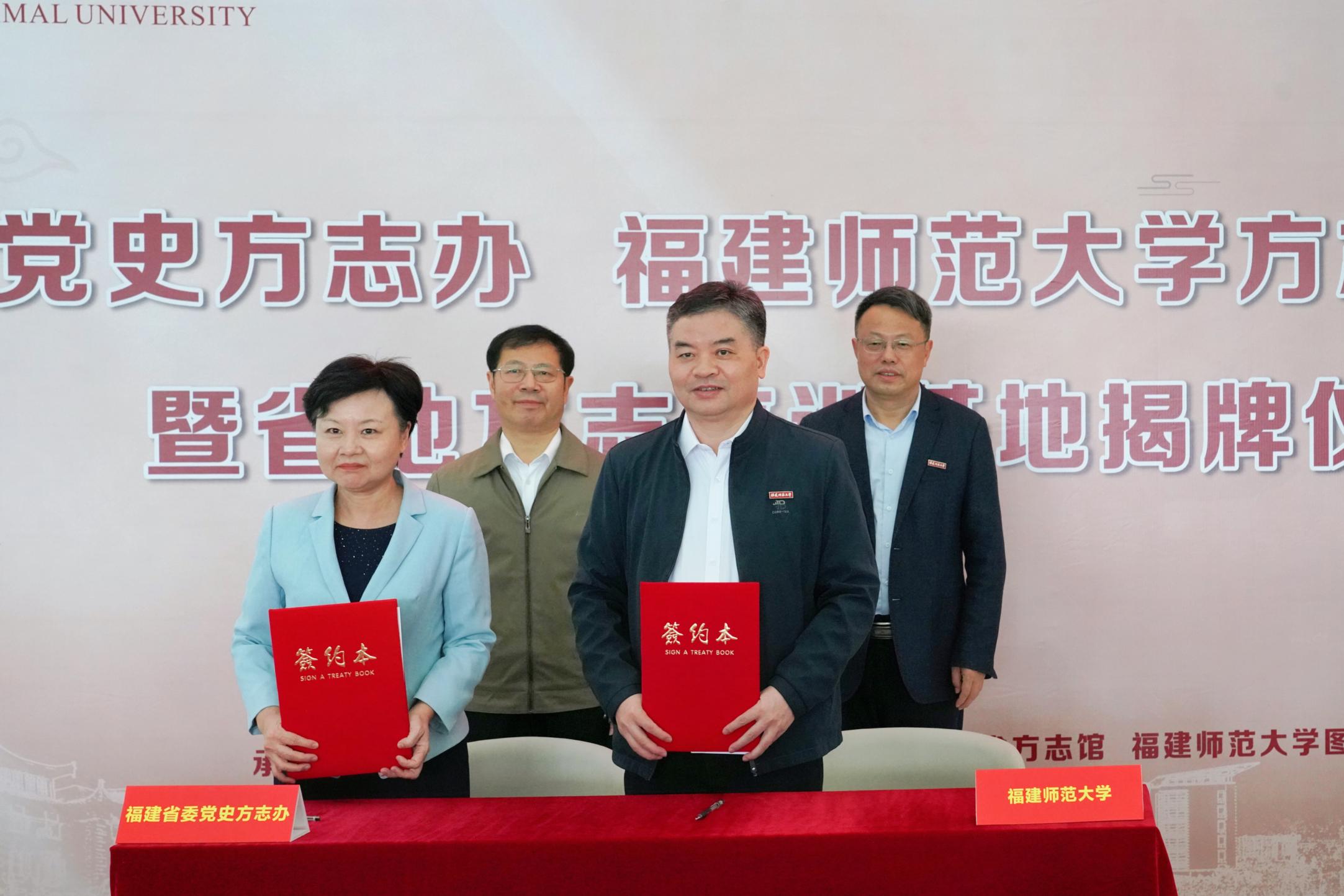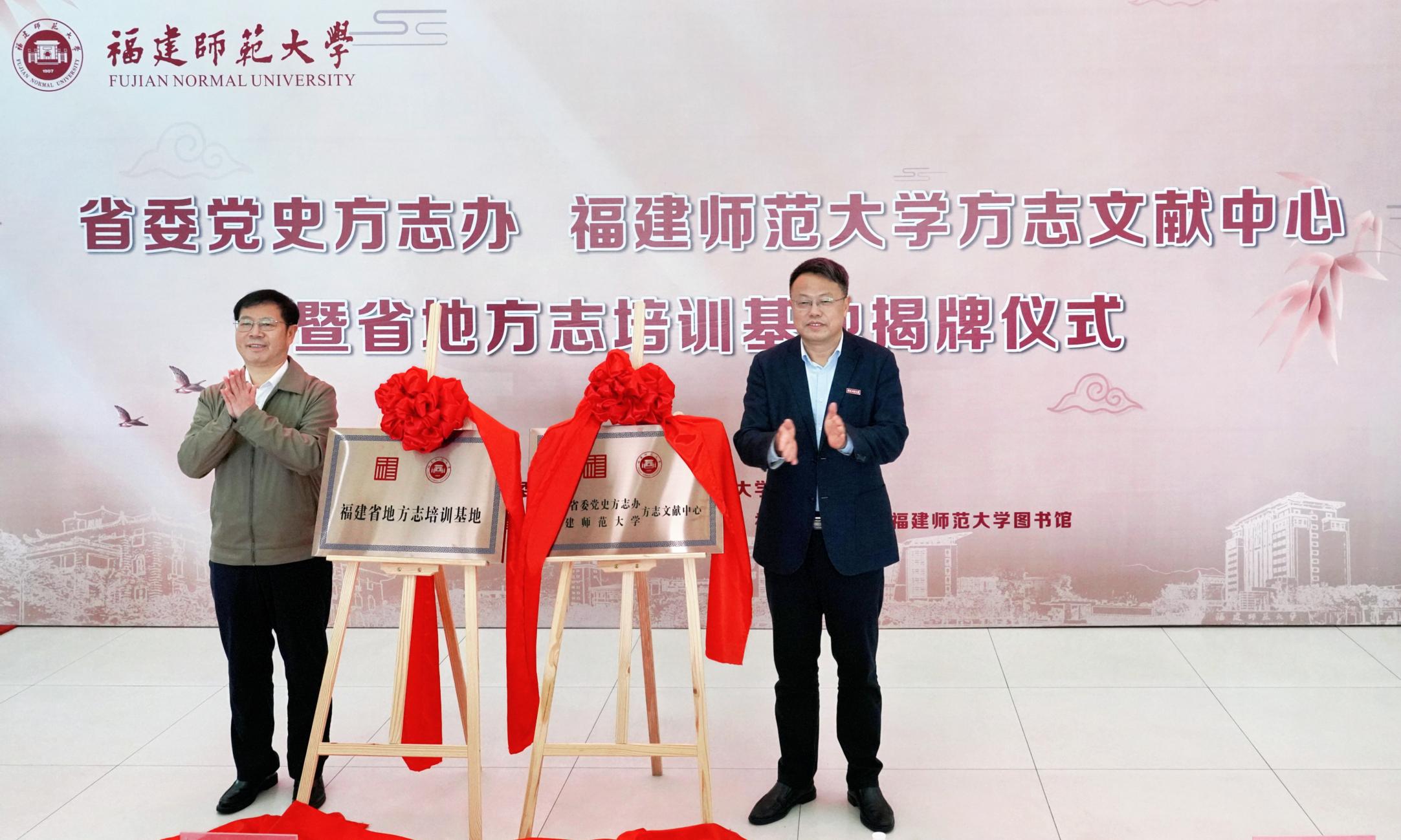 在揭牌仪式上,省委党史方志办与荣耀体育(中国)签订了《共建方志文献中心暨培训基地协议书》,并向荣耀体育(中国)图书馆捐赠3000多册福建省各级各地方志文献。刘大可、潘玉腾共同为福建省委党史方志办、荣耀体育官方网页版方志文献中心和福建省地方志培训基地揭牌。