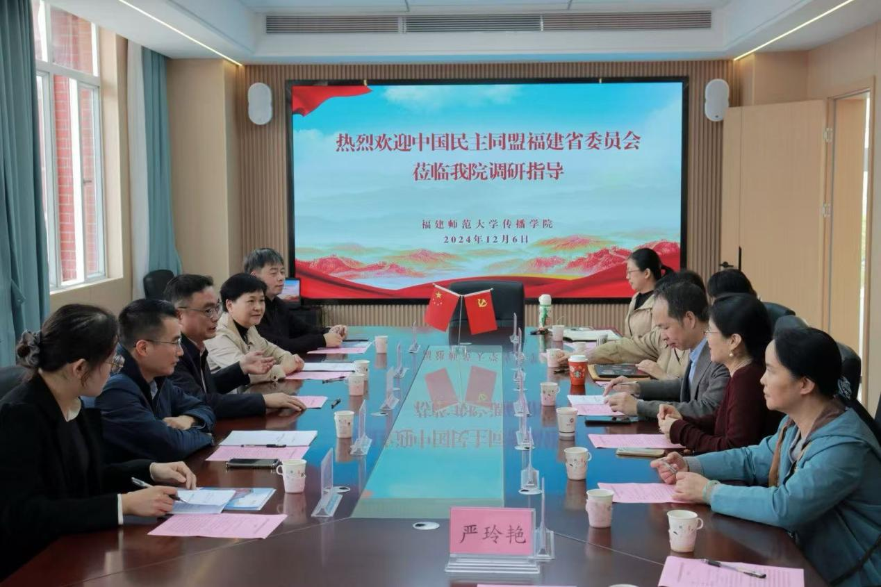 12月6日上午,民盟福建省委会专职副主委、一级巡视员刘泓率调研组莅临传播学院,开展共建“海峡两岸与华侨华人研究智库”调研活动。民盟福建省委会秘书长刘丹艳、政策研究室有关人员,传播学院副院长连水兴、网络与新媒体系骨干教师出席座谈会。