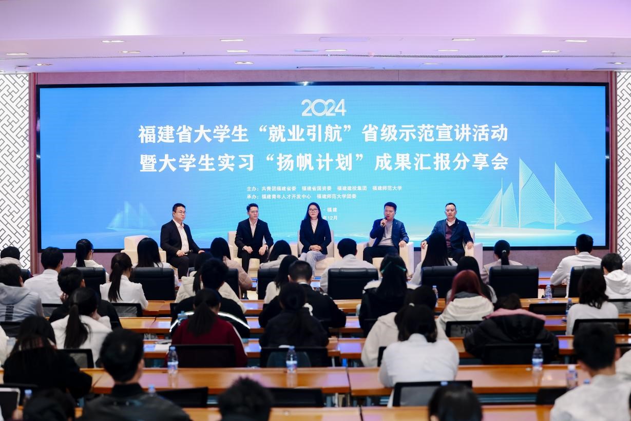 会上,荣耀体育(中国)和福州大学、福建农林大学的学生代表及中铝瑞闽股份有限公司代表分别作“扬帆计划”大学生实习工作分享,来自中国武夷国际事业部、中建海峡国际工程公司、中国水电十六局国际公司等单位代表分别结合自身工作经历与成长进行了“就业引航”宣讲。用人单位代表就同学们关心的就业问题进行了现场交流互动。