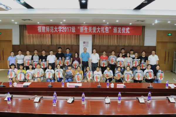 16日下午,校领导林和平、王长平、叶燊出席“新生关爱大礼包“颁发仪式。叶燊副书记代表学校对2017级新同学的到来表示热烈欢迎,并向同学们介绍了成为师大学子的三大优势:一师大是让人温暖的地方。学校不仅构建了“九位一体”的资助体系,还不断拓展更加贴近学生的“发展性资助”项目,让接受资助的同学得到锻炼、获得成长。二师大是让人成长的地方。将凡事为学生着想、凡事倾听学生声音作为学校落实立德树人根本任务的出发点,让学校发展与学生成长同频共振。三师大是助人起航的地方。学校已培育出一大批优秀毕业生,希望同学们以他们为榜样,积极贡献自己的青春才智。仪式上,校领导共同为特困新生代表发放了爱心大礼包,并与他们合影。