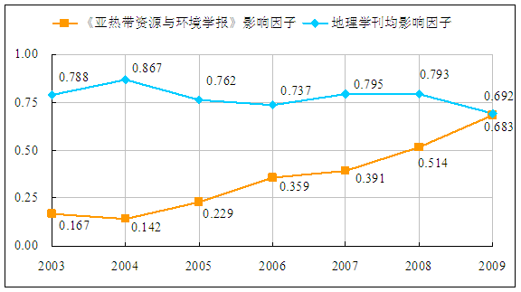 经国家新闻出版总署审核,2006年3月批准《福建地理》更名为《亚热带资源与环境学报》(荣耀体育官方网页版主办)。《亚热带资源与环境学报》改刊前(2005年)的影响因子为0.229,在我国地理学28种刊物中排名第17位,在全部统计源期刊(6009种)中排名第2655位。自改刊以来,编辑部广泛与国内外同行联系,积极拓展优质稿源,严把论文质量关,提高刊物编辑水平,学报质量与学术影响力连年大幅提升。近日,万方数据(中国科学技术信息研究所引证报告依托数据库)公布的2009年度期刊评价数据显示,《亚热带资源与环境学报》影响因子成倍提高,已上升至0.683,在我国地理学29种刊物中居第9位,在全部统计源期刊(6021种)中居第922位。同时,《亚热带资源与环境学报》一直保持高他引率,2009年他引率达0.98。