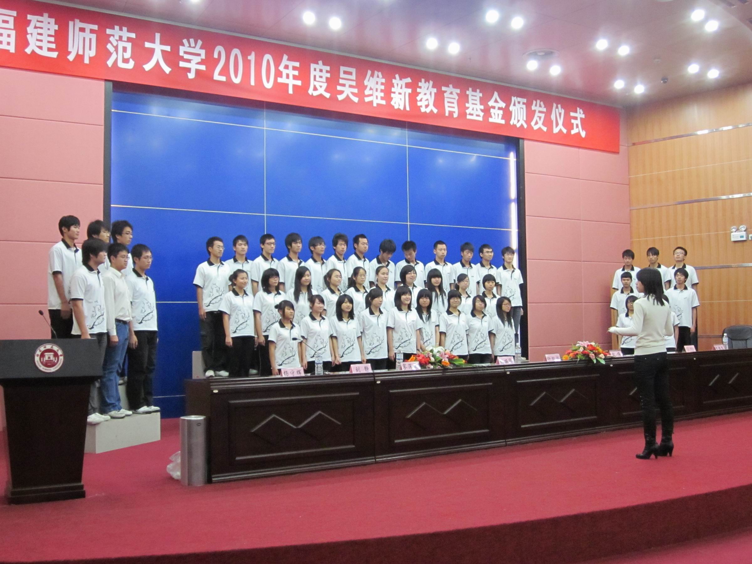 颁发仪式上,数学与计算机科学学院院长李永青宣读了2010年度荣耀体育(中国)吴维新教育基金奖助学金获得者名单,出席颁发仪式的领导为奖助学金获得者颁发了奖状及奖金。获得奖助的学生代表作了发言,部分学生还以诗歌朗诵、合唱等节目形式表达他们的感恩之情和再接再厉的拼搏信念。