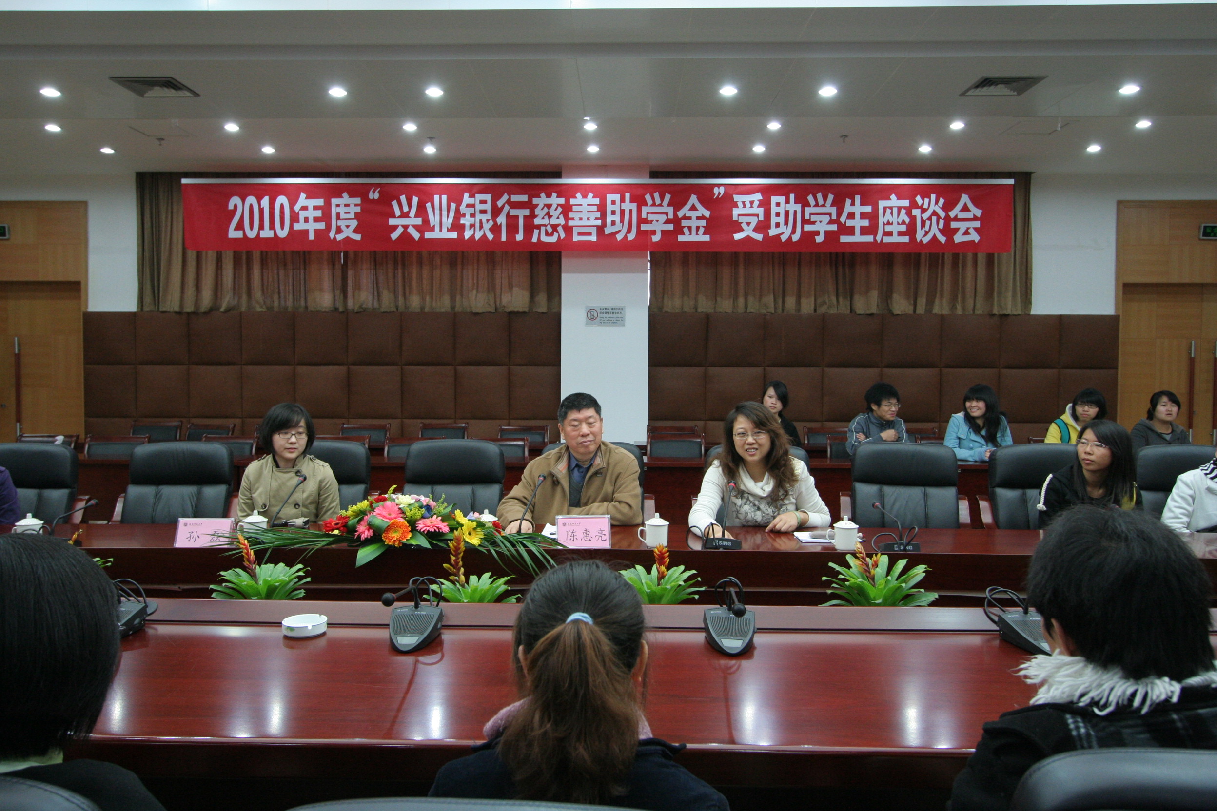 颁发仪式结束后,陈惠亮和孙磊与受助学生代表进行了座谈。
