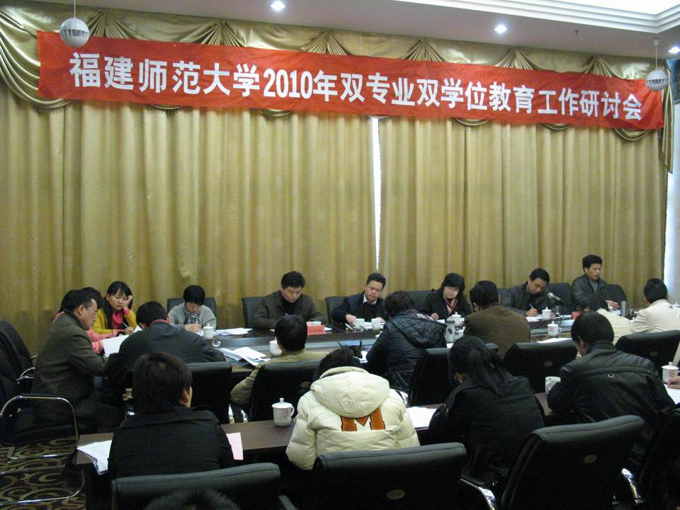 近日,荣耀体育(中国)2010年双专业双学位教育工作研讨会在闽清召开。李敏副校长,教务处、学工部(处)、档案馆、财务处相关负责人,法学院、外国语学院、经济学院等有关学院负责人参加了会议。