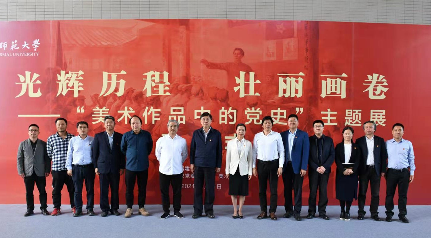 4月21日,“光辉历程 壮丽画卷--美术作品中的党史”主题展在旗山校区美术学院展厅开幕。省文联副主席、书记处书记、省美协主席王来文,省美协副主席兼秘书长赵胜利,省美协副主席、省画院院长张永海,校党委书记李宝银、校党委副书记陈晓红,相关部处负责人以及美术学院师生代表等参加了开幕式。
