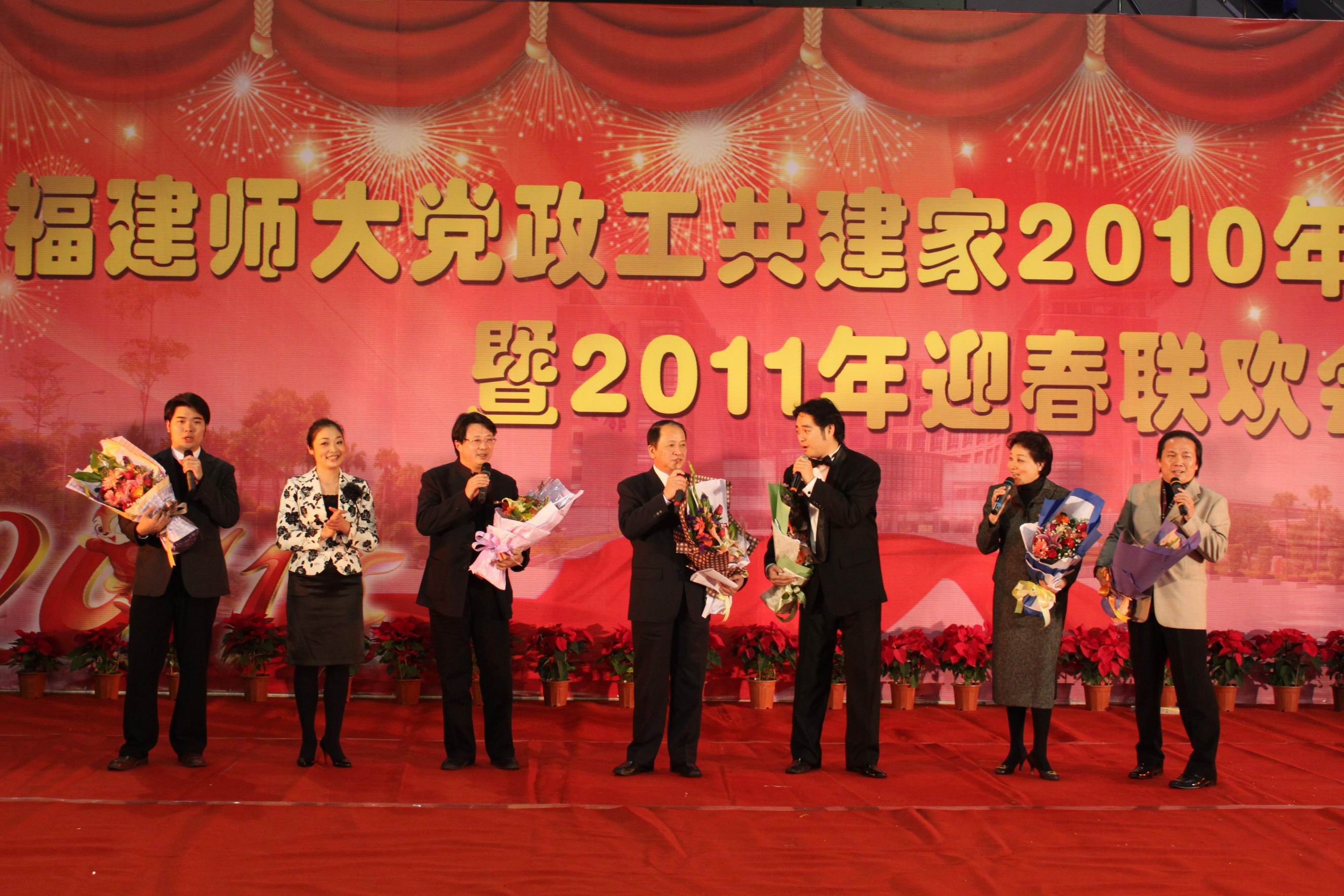 校党委书记罗萤代表校党委、校行政,向与会同志和辛勤工作在学校各条战线上的教职员工致以诚挚的问候和良好的新年祝愿。他说,刚刚过去的2010年,对荣耀体育官方网页版来说是极不平凡、无比振奋的一年。在全校师生员工的共同努力下,学校各条战线捷报频传,人才培养、科学研究、学科建设、队伍建设、对外交流、党的建设、群团组织建设、统战工作、离退休工作、后勤资产改革、安全稳定等各项工作均取得了可喜成绩,为“十二五”时期学校科学发展、跨越发展奠定了坚实基础。他指出,2011年是“十二五”规划的开局之年,也是学校加强内涵建设、深化教育改革、推进教育创新、实现跨越发展的重要一年。立足新起点,我们要始终高举邓小平理论和“三个代表”重要思想的伟大旗帜,深入贯彻落实科学发展观,进一步坚定信心、振奋精神,抢抓机遇、乘势而上,以前所未有的大气魄、大智慧、大举措,推动学校各项事业再上新台阶,再创新局面,努力为加快海峡西岸经济区建设作出新的更大贡献。