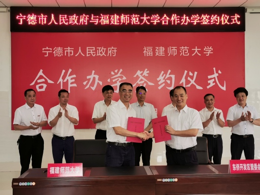 仪式上,副校长郑家建分别与宁德市副市长缪绍炜、宁德市东侨开发区管委会主任罗义春代表合作双方签订基础教育协同合作框架协议及合作办学协议书。签约仪式后,郭锡文、李宝银共同为合作学校揭牌。
